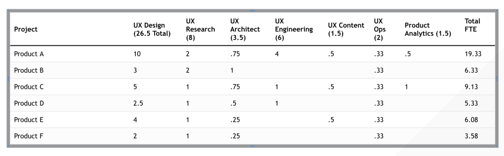 In late 2023, led the UX leadership team through an exercise in prioritizing the team’s focus areas, what projects the team should stop supporting and those that would continue as is. Focus areas were then more ideally staffed for research, design and UX development to help ensure those priority projects had the best chance for success. Those priorities aligned with the larger corporate strategy initiatives.